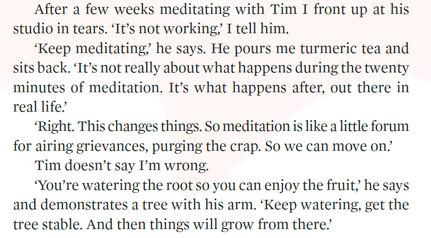 If you’ve read my two most recent books, or followed my writing here and elsewhere over the past 15 years, you’d be familiar with the influence he has had on me. Tim Brown was my meditation teacher, then my life adviser, then my very close friend and confidante. I quote his wisdoms ad nauseam and you might be familiar with this refrain that begins many of my chapters and posts: “My meditation teacher Tim once said …”.