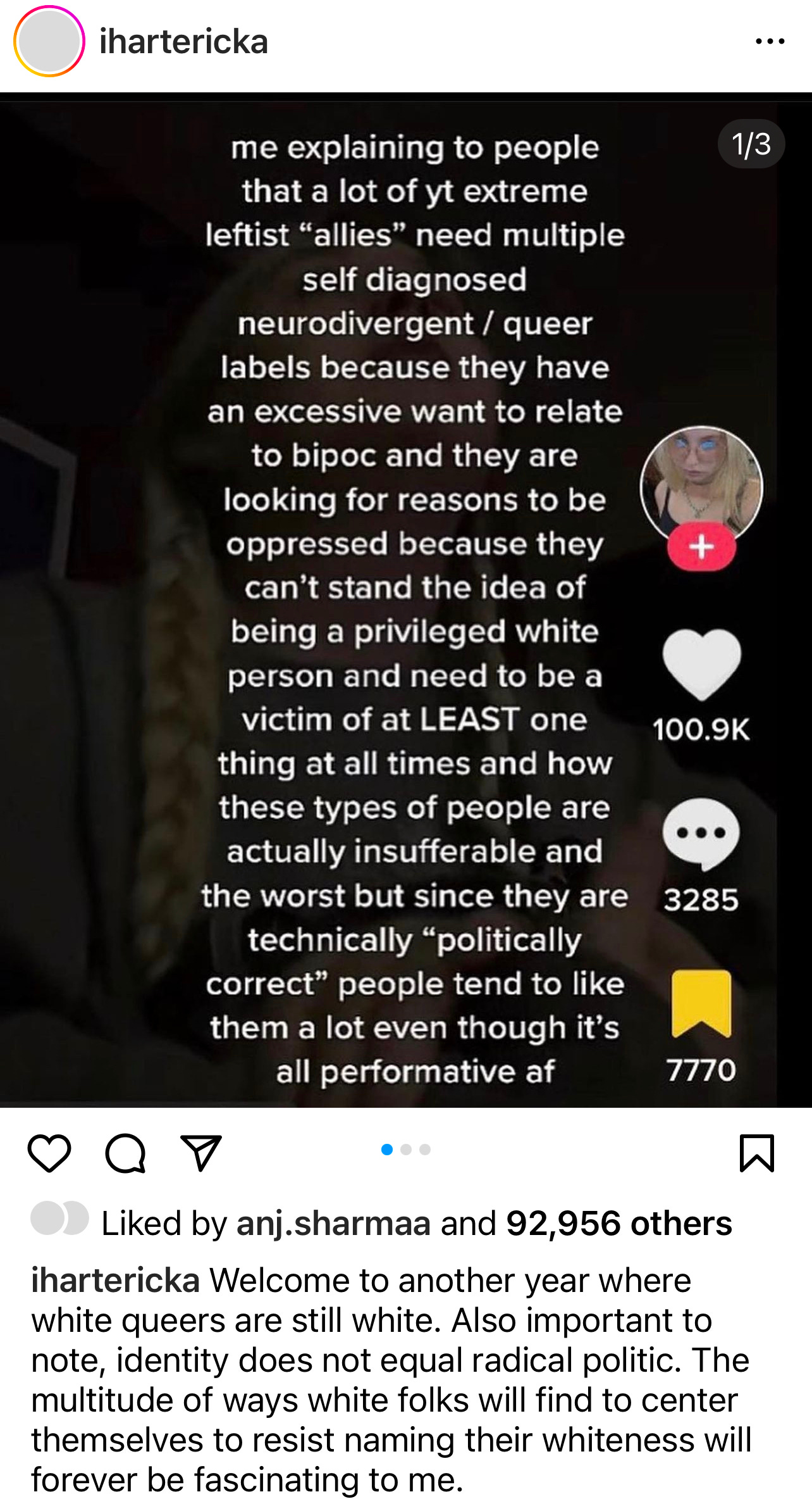 The young woman from the bookshop later sent me this meme on IG DMs. These issues intersect with race, too. And class.