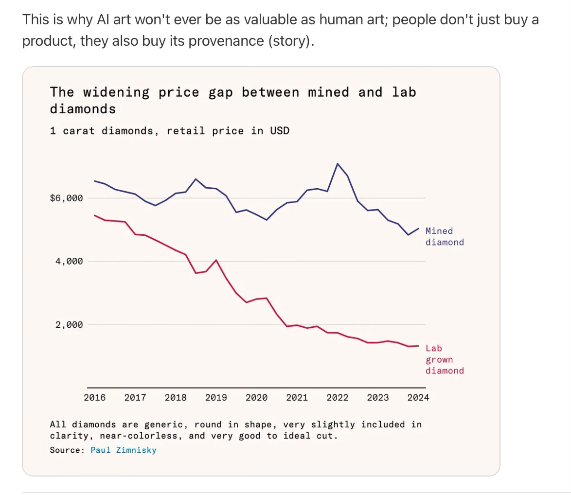 Substacker Gurwinder points to the example of lab-made diamonds.